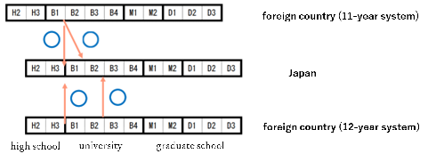 A: The admission requirement in Japan is, in general, based on the duration of a curriculum. This is based on the following idea: it is difficult to verify the substantial equivalence of school education between Japan and foreign countries. On the other hand, in order to ensure the connection between Japanese and foreign school education, for the sake of convenience, a person who has completed 12 years of school education in a foreign country is considered to have received the same level of school education as in Japan, and is allowed to admit to a Japanese university, etc.